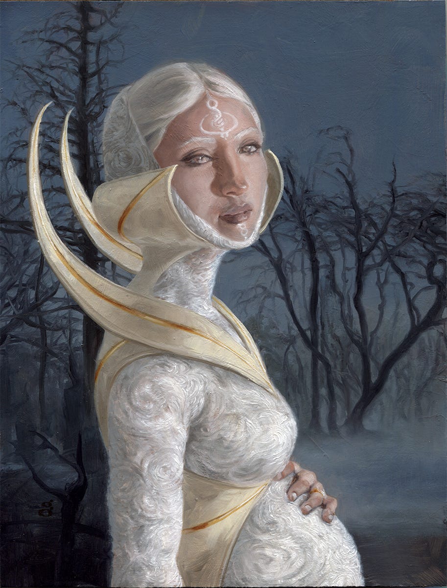 Welcome to the last post of 2025. I appreciate you following along these past few months—it’s been a very interesting journey for me as I too rediscover a lot of work I’ve done these past decades. It’s very easy to make, make, and make some more. Then, periodically, I gather up a pile of drawings, paintings and such, to put away. I mount drawings to backing boards and bag them, I trim unpainted edges off paintings and bag them, give them a look, then file them and move on. Reconsidering old work is something there isn’t a lot of time to do. For Magic, I see the work more often in the way of cards players bring to sign at events, so I get to experience them a lot more. But sometimes I pull out an older Magic painting, even, and seeing the original art surprises me too.