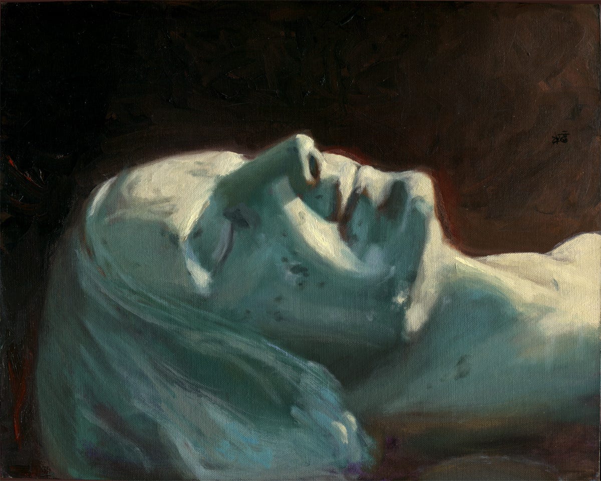 It’s fascinating to look at my 16 or 17 year old self’s efforts here. It’s not bad, considering age. I’m half tempted to get a hold of this cast somehow again, to give it another go. Of note as well is that it is painted on basic-level canvas panel from any ol’ art store, with moderate thickness of student-grade paints, and is holding up very well, materially. I’m not surprised--I have a couple other panels that are 2-3 years even older that are holding up fine still.