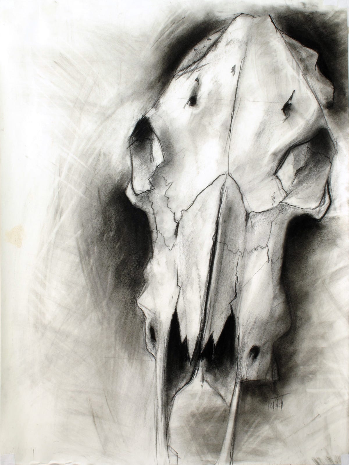 In my painting intro class, we had a plaster cast I later came to learn was kinda famous. This painting was done I think in two sessions of maybe two hours each, or in one session but I repainted a bit more after it dried. You can tell because the profile around the cheek through underjaw was re-painted a bit, and ghosting remains. I painted it as it lay on a table, as the painting is shown. Later, I stood it upright and noticed the drawing errors, and corrected them. I also signed it in the vertical aspect, but I prefer it horizontal again.