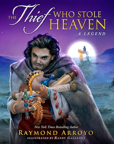 Working on The Thief Who Stole Heaven was a non-stop sprint. Right toward the end of the sprint, the finish line in sight, I was asked if I could add one more spread to the book, for the dedication/copyright page. They wanted something fairly simple in this case.