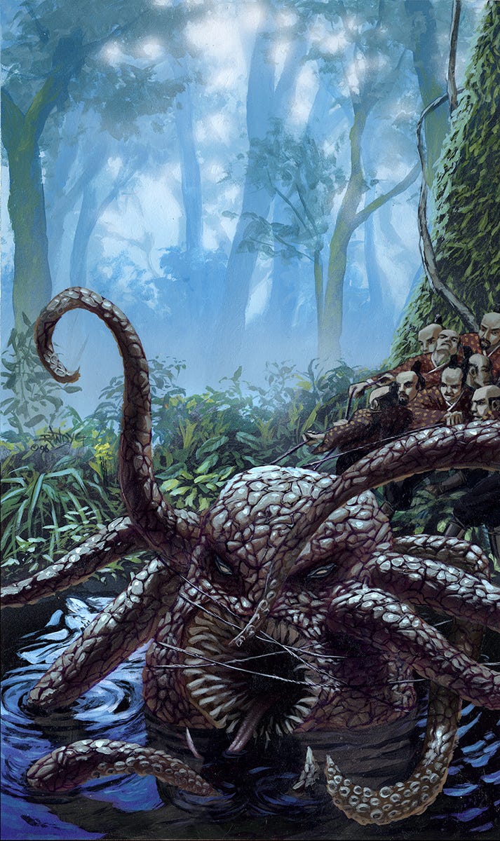 I had titled it, “The Bog,” when I did it, which I am pretty sure was also not how it was assigned. Legend of the Five Rings in particular often had basic descriptors as assignments. At the time I had not been to Japan, which I did in 2000 and 2004. And Japanese was a completely foreign language to me, as it wasn’t until after my second trip, and then really after 2008 that I made any actual attempt at learning the language. So this was all a kind of, “Oh neat,” moment at the time.