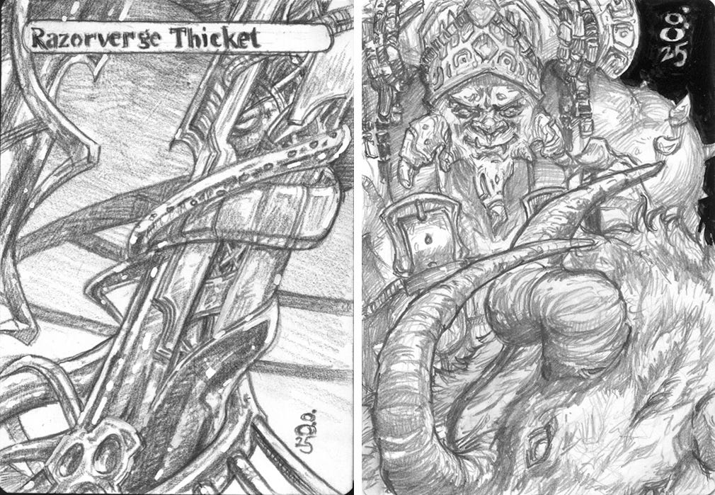 Sketch commissions are rendered in pencil, ink and/or acrylic, and the back of the proof may get a clear primer to facilitate reception of media, especially on newer cards.