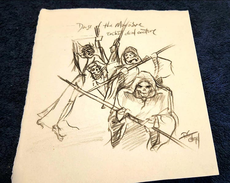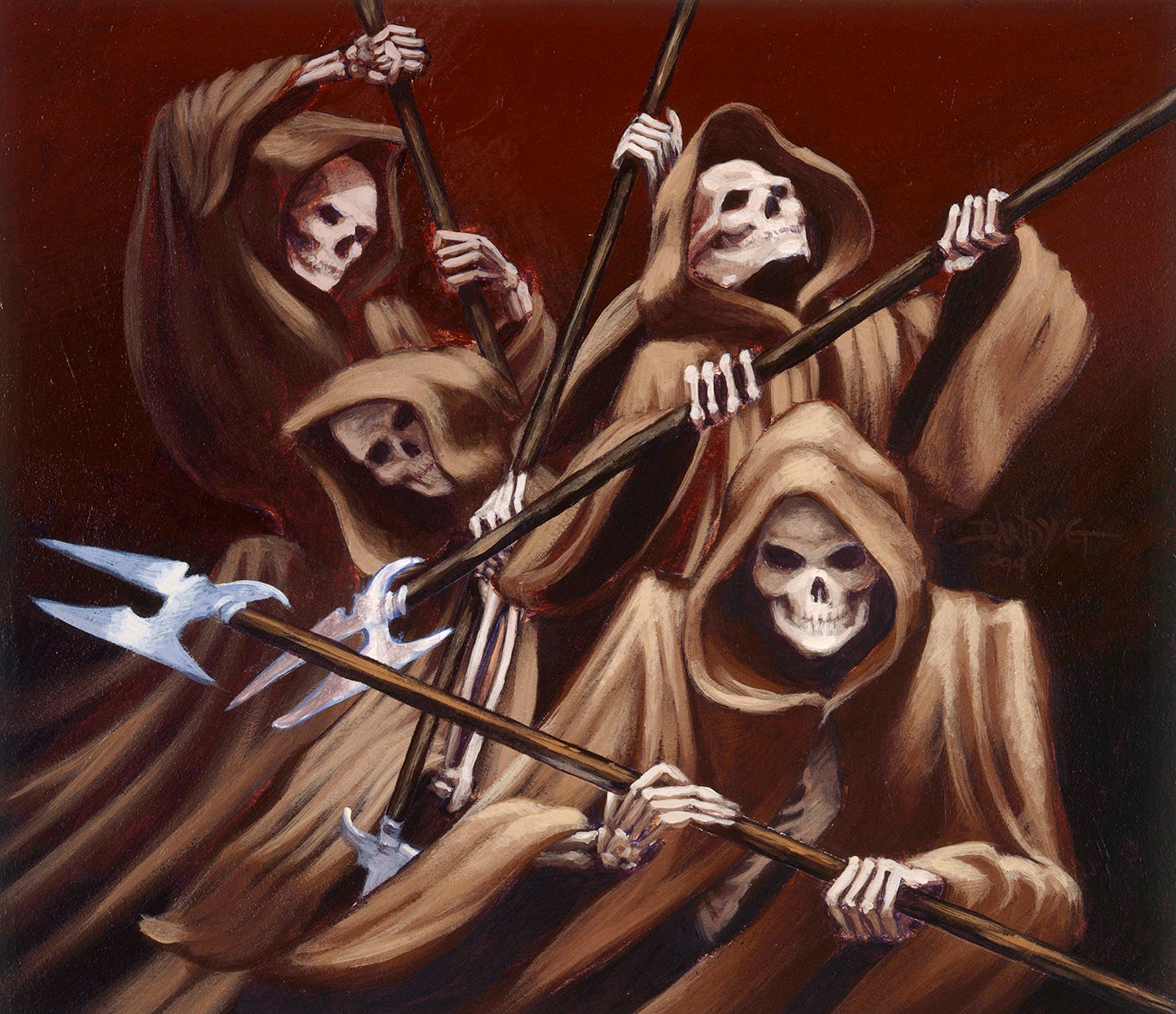 Dance of the Dead was my favorite of my contributions to that set at the time, and I was thrilled to see public appreciation of it when it released. I held onto it longer than most early era Magic paintings, and sold it for a tidy sum when I parted with it in 2000 or 2001. A tidy sum at the time, compared to the going rate of most Magic originals then! So I was thrilled to see it come up on the secondary market not long ago, and to watch it set a new record for a painting of mine. I never discuss numbers, but being a public sale I wasn’t remunerated for, I’ve got no problem doing so here. It’s not because the art is so awesome of course: it was used in a tremendously popular product, was an early and therefore scarce painting from those early years, was never reprinted which means it never had its art replaced and improved on. All these contribute of course, with Magic having a very unique collector base and market overall compared to the art world at large.