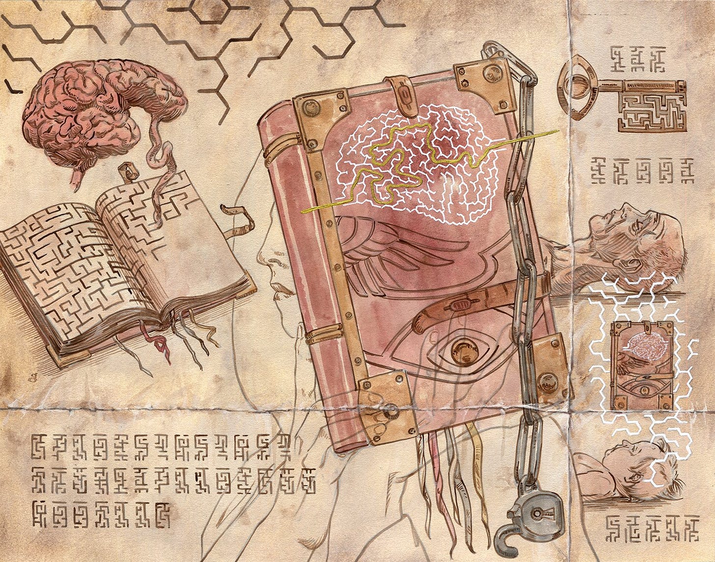 When earlier in 2021 I was asked to re-illustrate Karplusan Forest, for the first time in my Magic career, it was an enjoyable novelty. So imagine my surprise when after not very long, art director Sarah Wassell reached out to me about re-illustrating Mazemind Tome, which I painted in 2019. Just over 2 years later, I was going to revisit this piece.