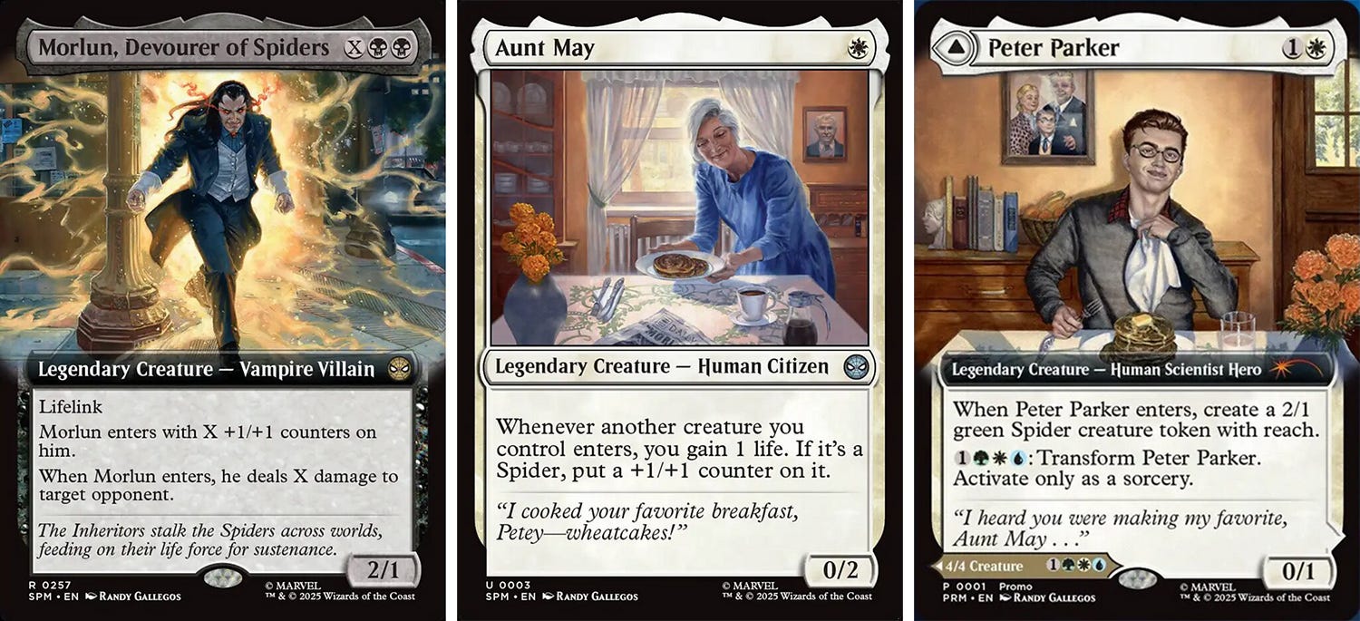 Morlun was assigned with Aunt May in my first set of assignments for Marvel’s Spider-Man set for Magic: the Gathering. At the time, I did not know whether I would be included in the second wave, so I thought it was cool to get Aunt May and also cool to get a notable enemy within the Spider-verse. Certainly Spider-Man has decades long-running nemeses: the Green Goblin, Rhino, Doctor Octopus, etc.. Morlun is one of the big ones of more recent decades, and I was happy to portray him...but I also had to get up to speed on him as I was less familiar with him than the older ones!