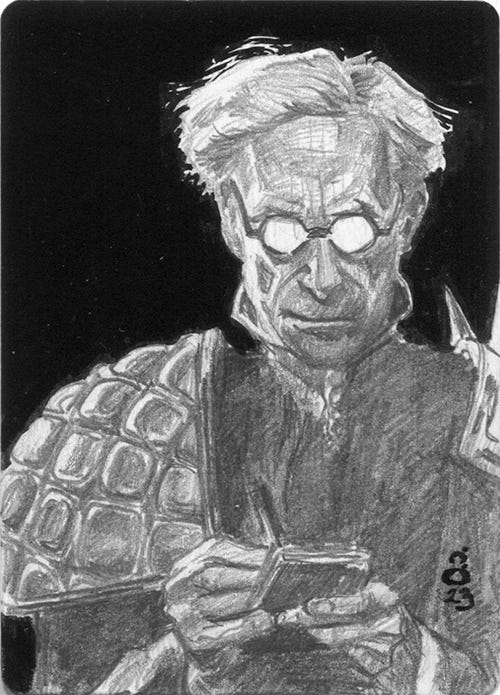 Really cool to read about (and listen to) the background on this card! It was great meeting you in 2023 to get the sketch on the Stern Proctor :) I have my fingers crossed that you have some new art in the upcoming Secrets of Strixhaven set.