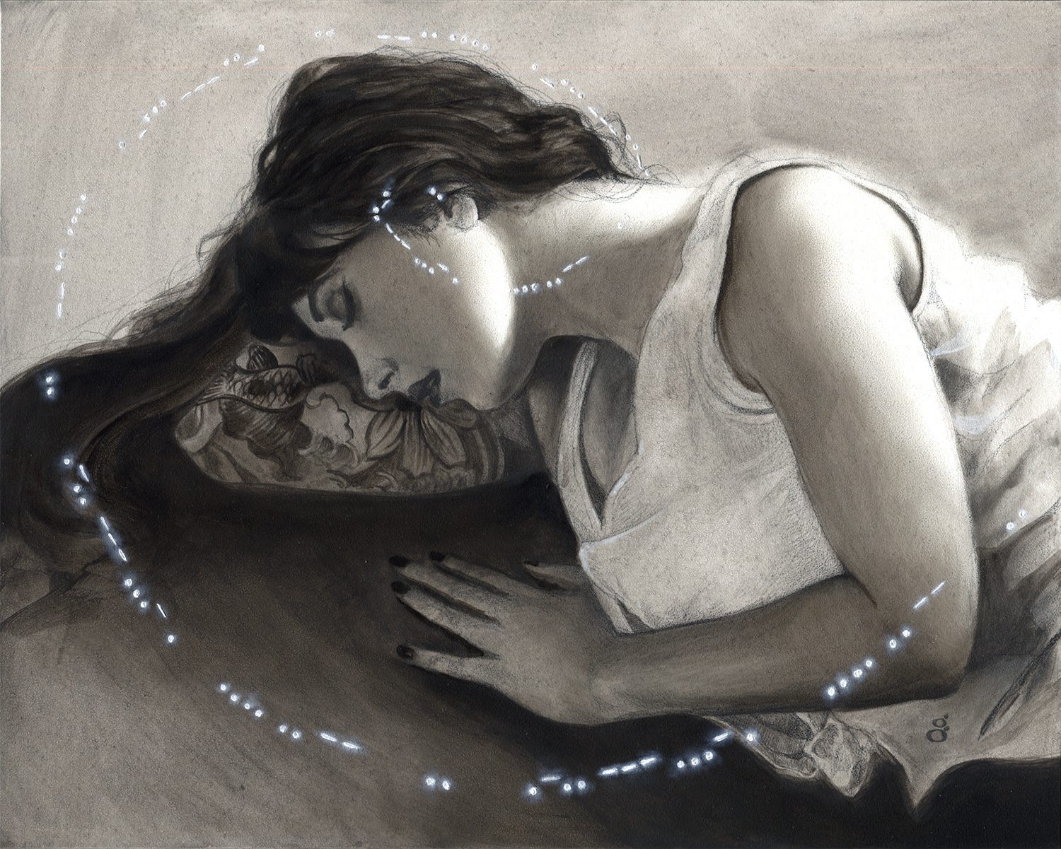 Bjork’s “Pagan Poetry” is a favorite of mine off her beautiful album, “Vespertine.” I had already conceived of another figurative work I could use a model for and sought out someone I could bring in to photograph for both works, since I was already going to be paying her fee to bring her in for the other painting.