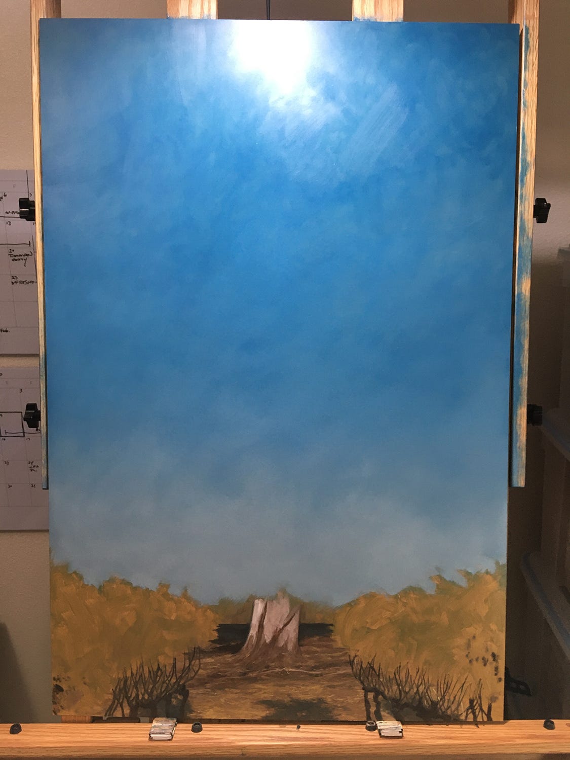 If this had been painted on the smaller side, say, 12x18” it might have made a fine image, but by increasing the size to 24x36”, I felt I was more able to get a sense of scale into this. Naturally, it could have benefited from being even twice that size, but at that point you’re almost competing with actual trees!