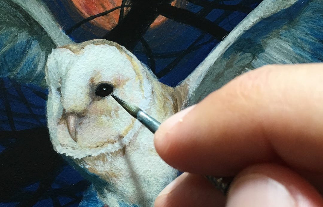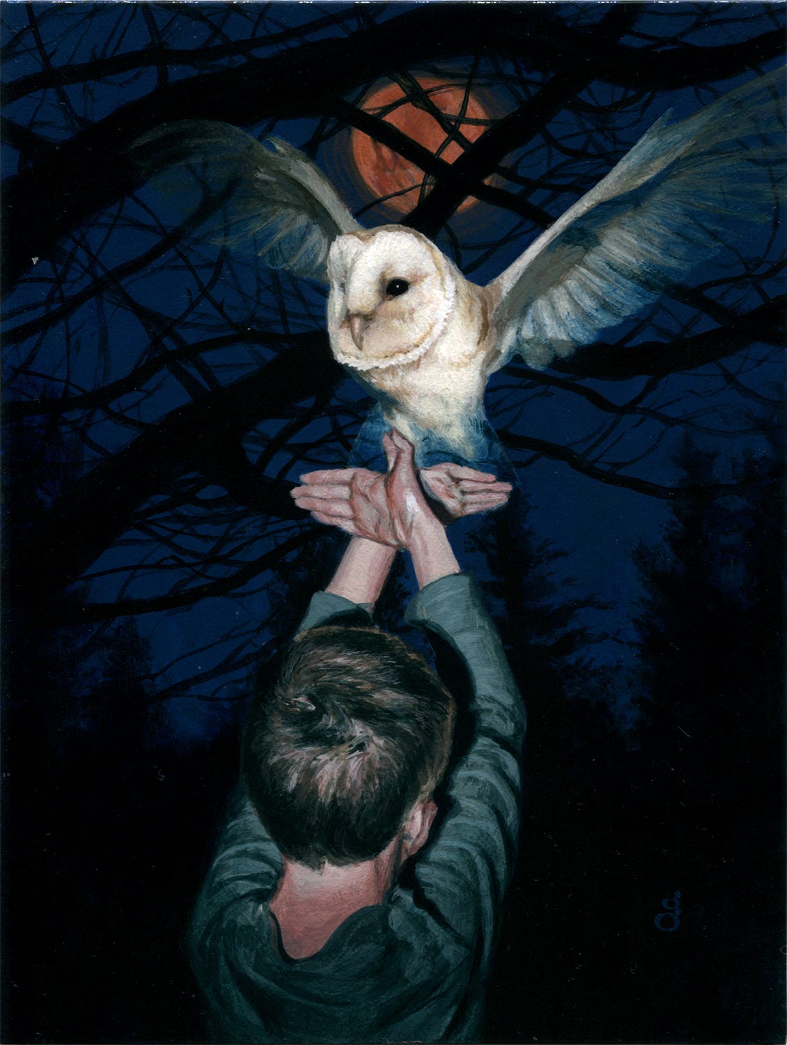 When I ran across the track “White Owl” by Josh Garrels around this time, I was immediately struck by it. I came across it one night while working. I had playing in the background the Game Awards webcast, which was at least 50% trailers for upcoming video games. One trailer had the intro music of this song running behind it. Within seconds my ears pricked up and I rushed to grab my phone to identify it. From there, straight to YouTube to hear the whole track, including the lyrics. I probably listened to it nonstop the rest of the evening, and it dug itself into my subconscious so that when it was time for my EDO calendar date, there was almost nothing else to do but to create art based on it.