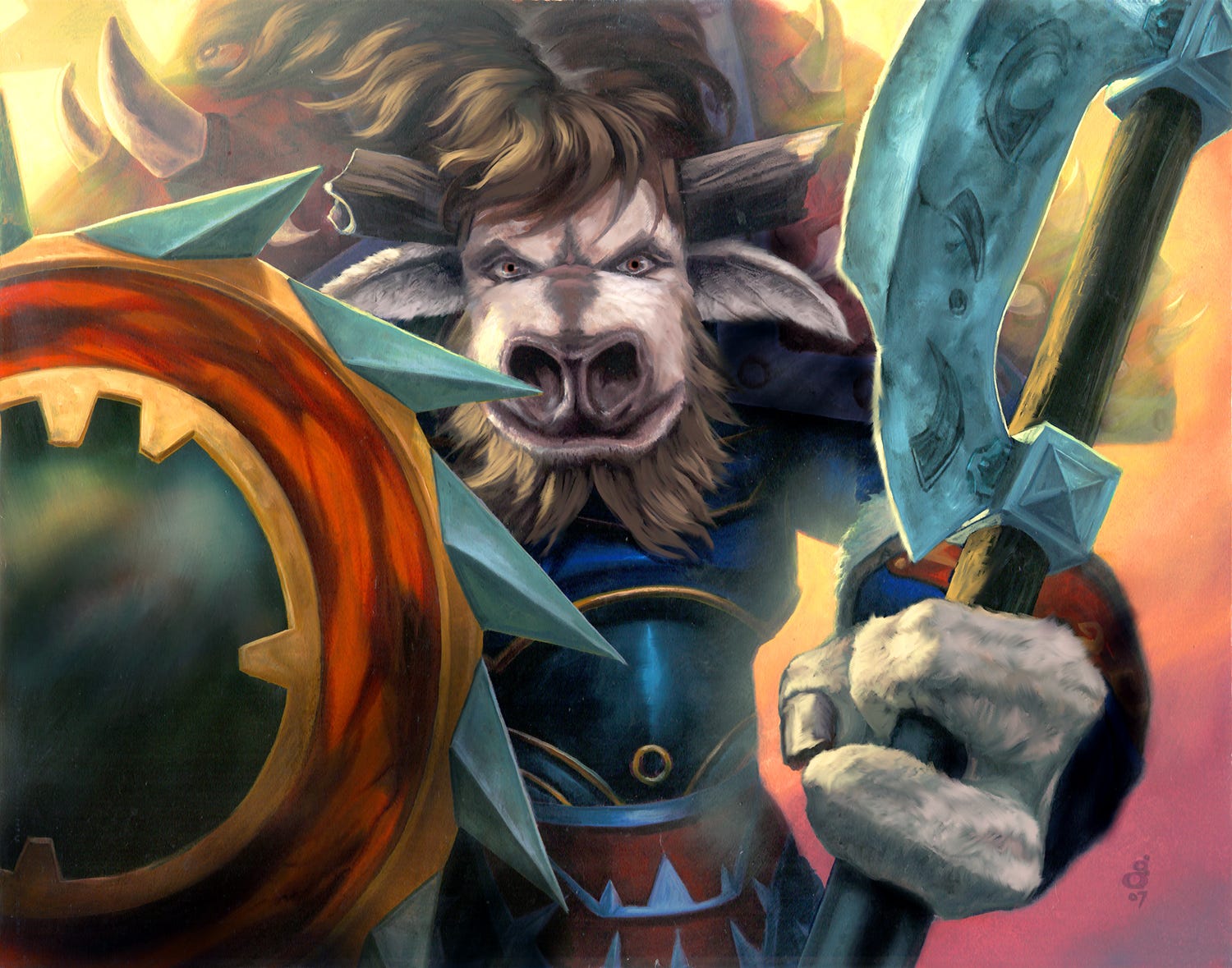 Most of what ended up being difficult for me in my work for World of Warcraft came down to a question of interpretation. This character piece, depicting a Tauren: essentially a minotaur type creature, was one such.